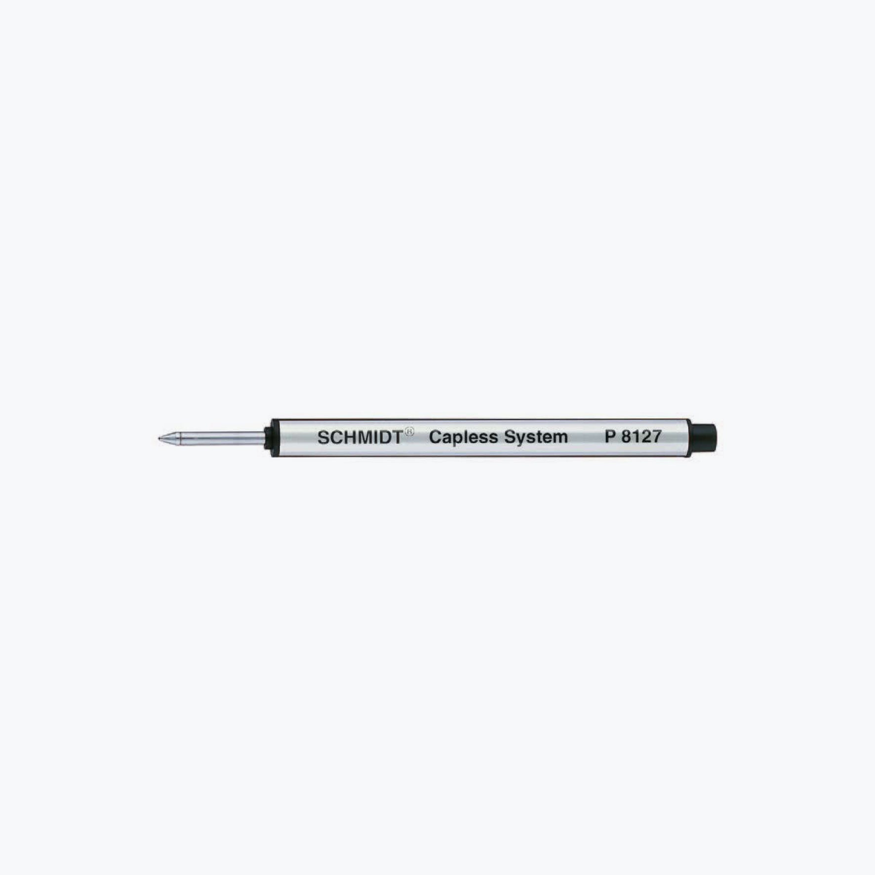 The Schmidt P8127 is a short version of the 8127 refill, designed for compact pens. It offers the same capless, no-dry-out technology, with a medium point and a metal tube construction. Compatible with various pen models requiring a short refill.
