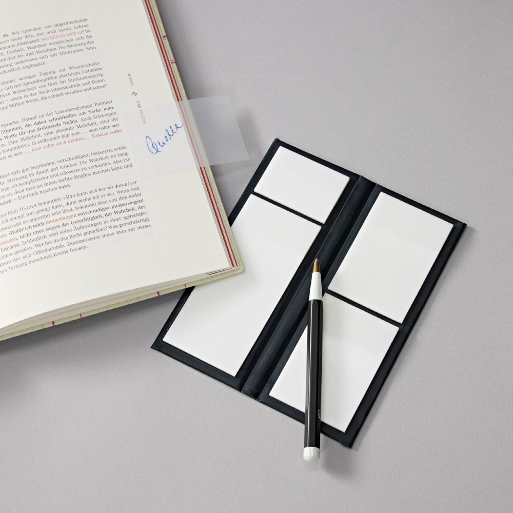 200 matt-transparent adhesive notes in three sizes that leave no residue when removed. Suitable for use with ballpoint pens, pencils, or highlighters.
