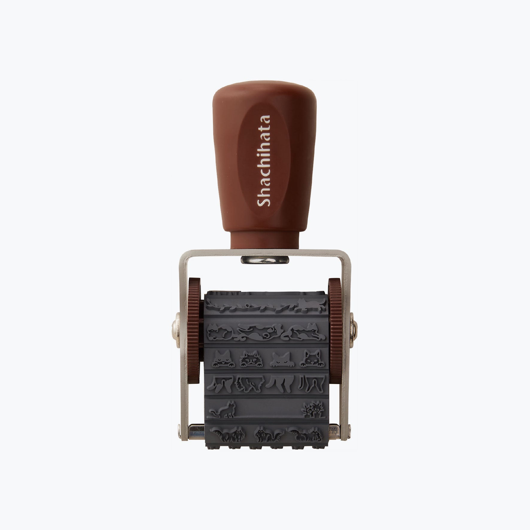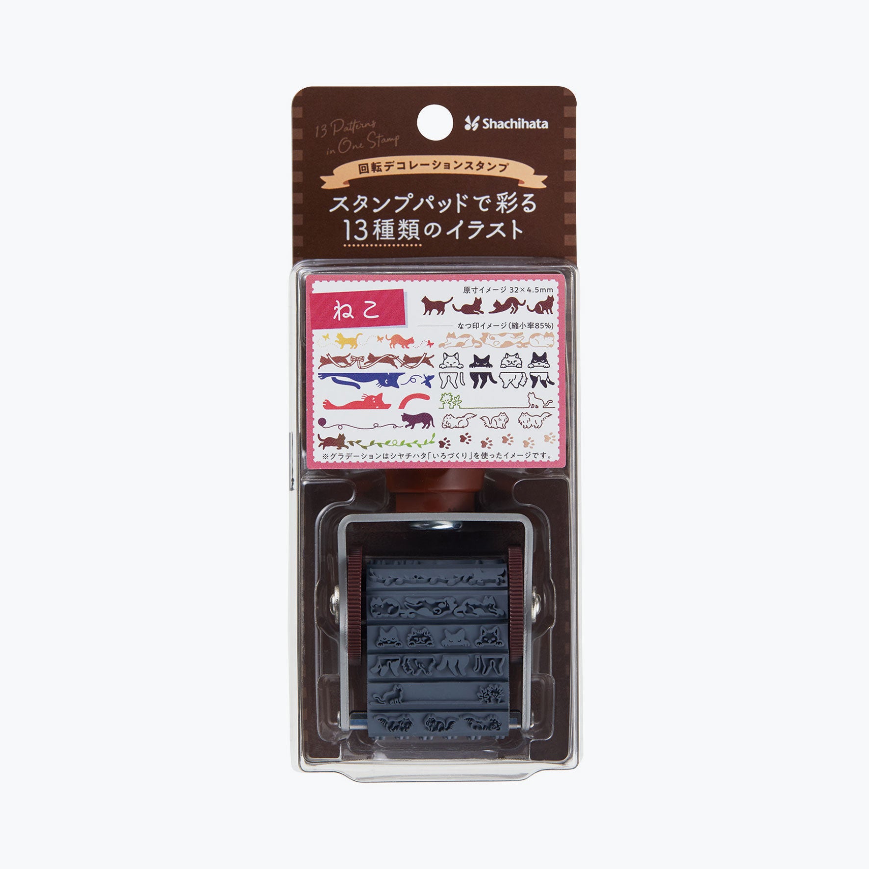 Add fun designs and borders to your planner or notebook with this rotating Shachihata rubber stamp. There are 13 cat-themed designs, which you can switch between by rotating the ridged wheels on each side. Each design is approximately 32mm long and 4.5mm tall.