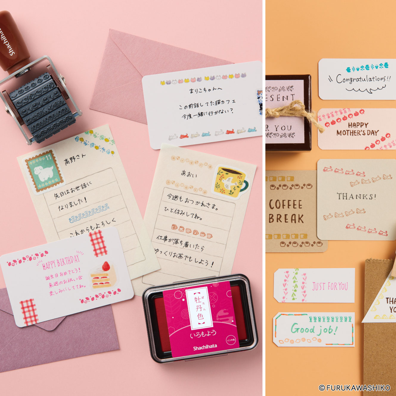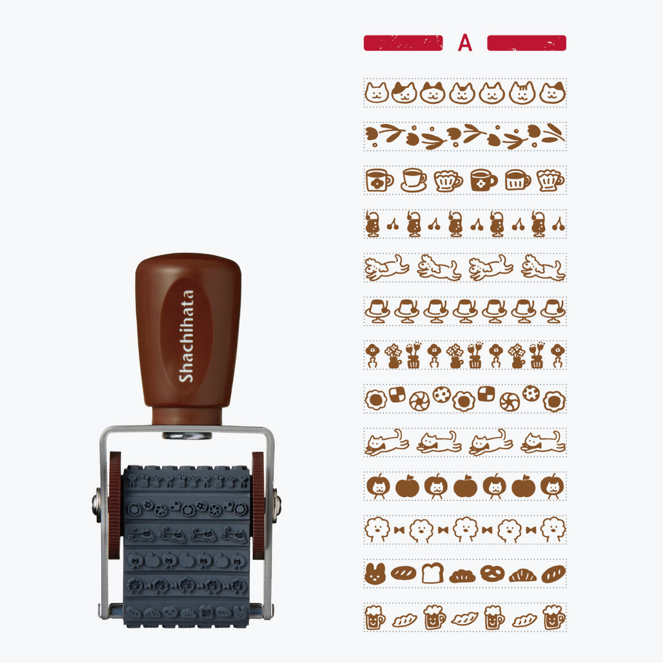 Add fun designs and borders to your planner or notebook with this rotating Shachihata rubber stamp. There are 13 Furukawashiko A designs, which you can switch between by rotating the ridged wheels on each side. Each design is approximately 32mm long and 4.5mm tall.