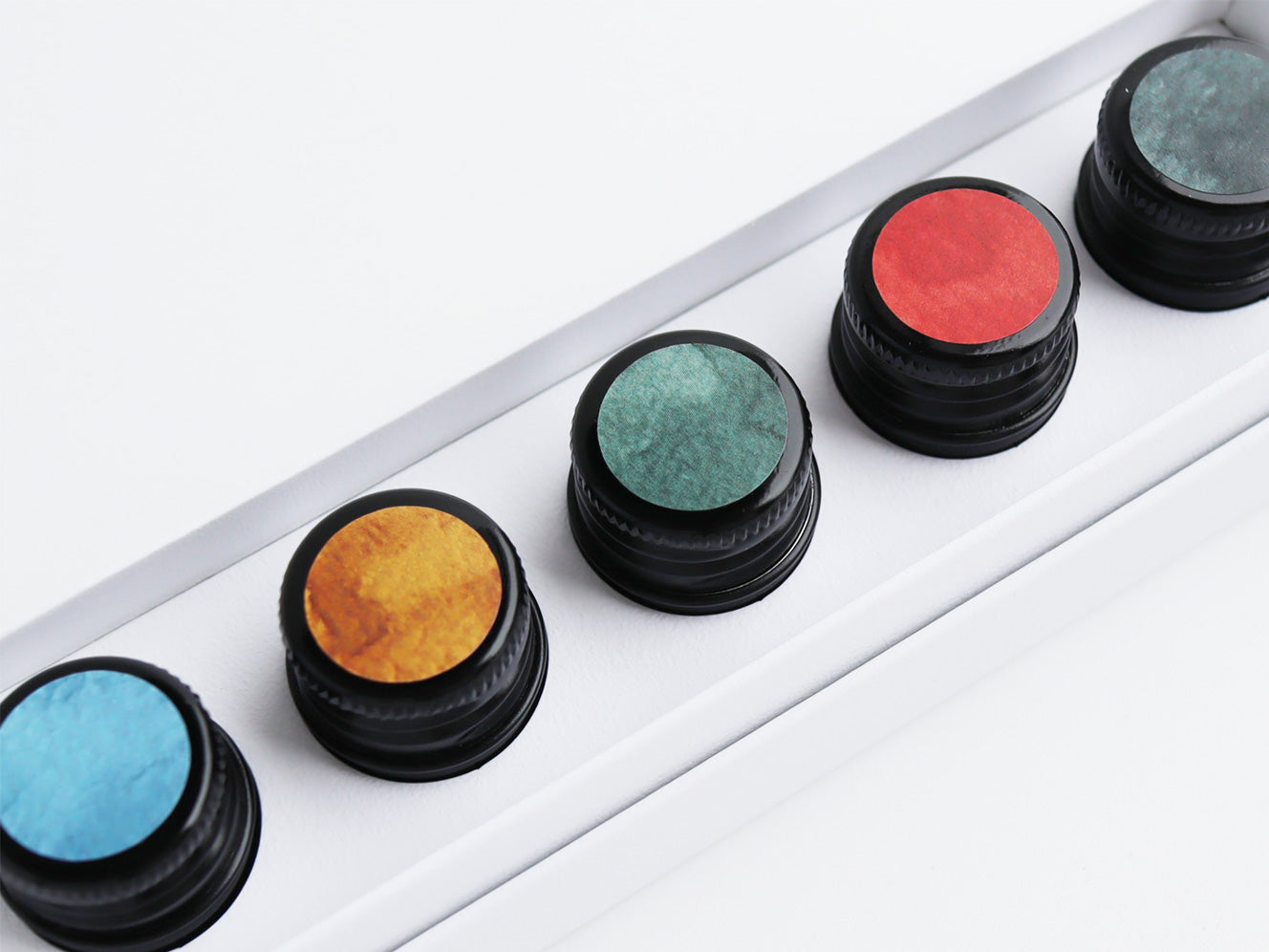 Right when it feels like fountain pen inks are getting more and more sheeny and shimmering and intense, TAG from Kyoto, Japan bring us their beautifully naturalistic Landscape ink set in collaboration with illustrator and textile designer Tomoko Murata.