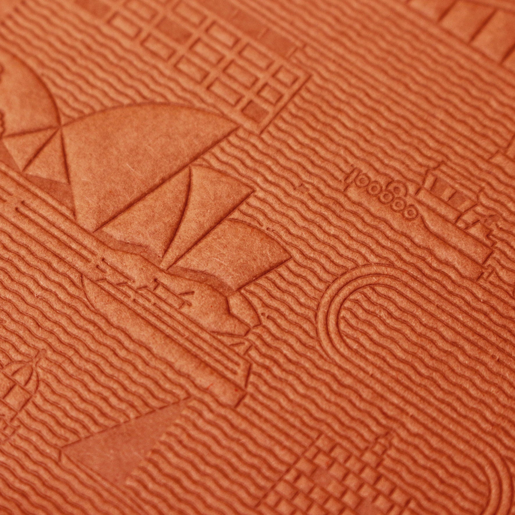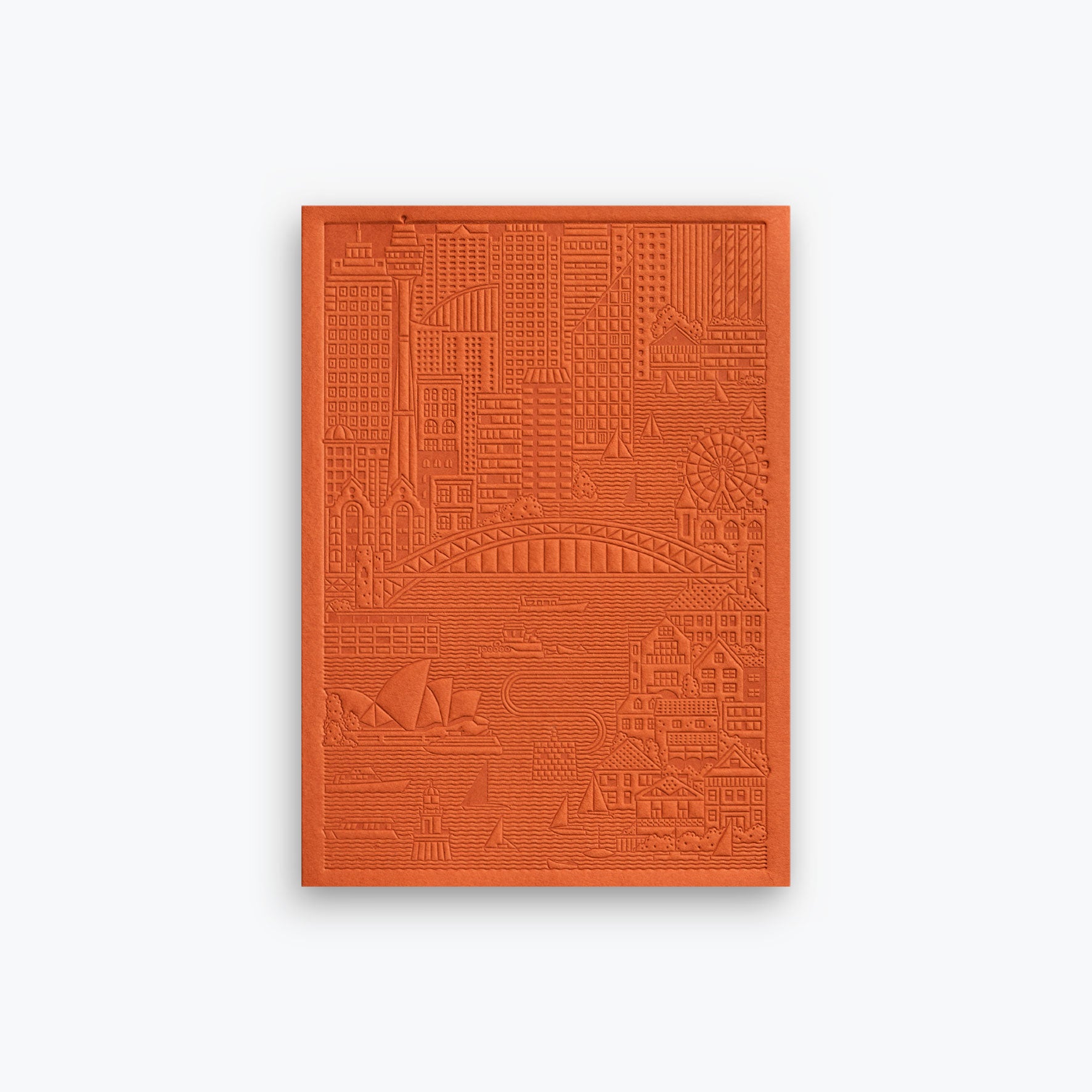 Celebrate the cityscape of Sydney with this intricately designed and beautifully made The City Works notebook. The hand-pressed cover is lay-flat bound in the Netherlands, ensuring the notebook remains perfectly flat when open. The cover paper is from Colorplan, England, while the 128 blank pages on the inside are from Munken, Sweden.