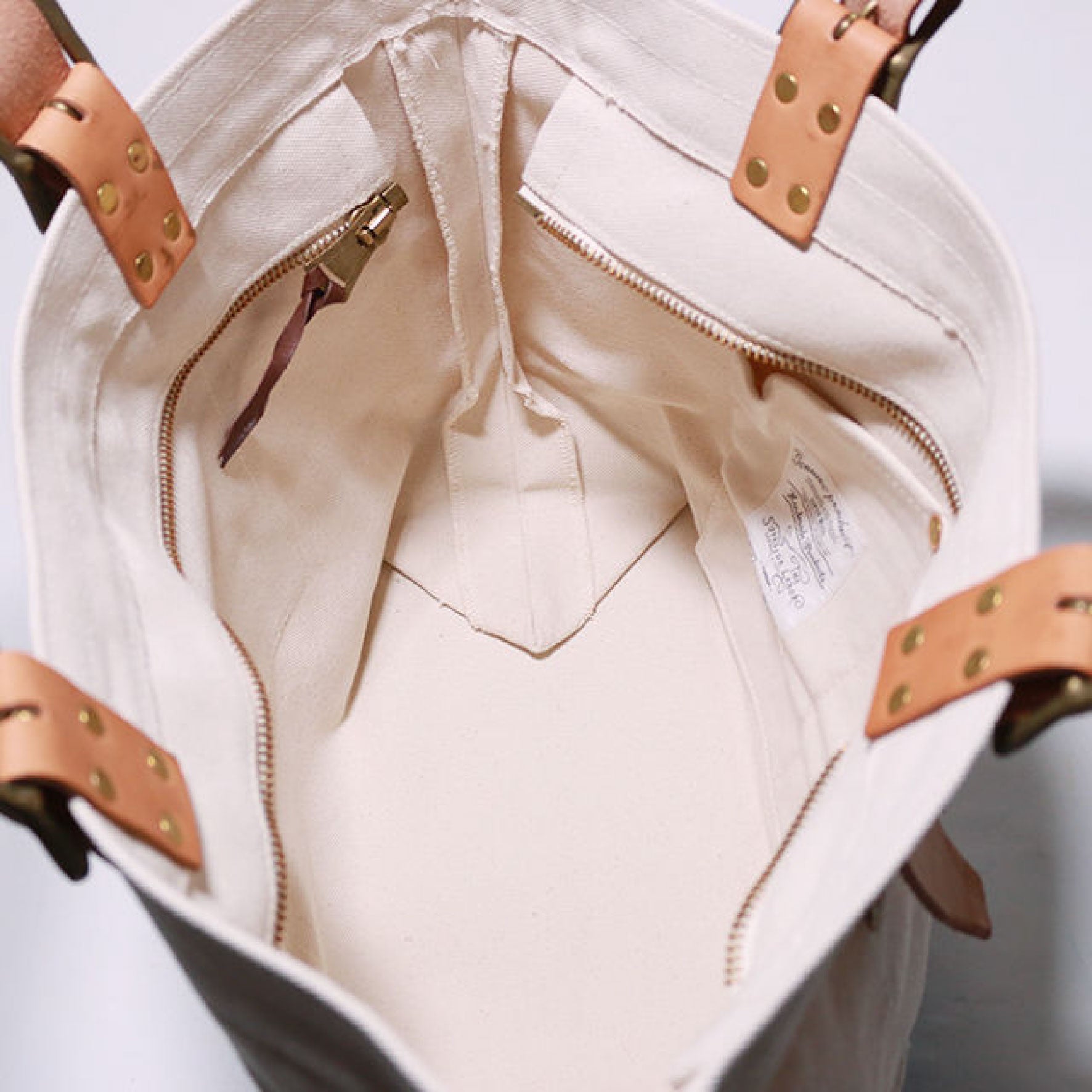 Constructed from natural undyed veg-tan leather, raw brass fittings and hardy Kurashiki canvas, the Superior Labor Engineer Tote has become a cult favourite among stationery enthusiasts.