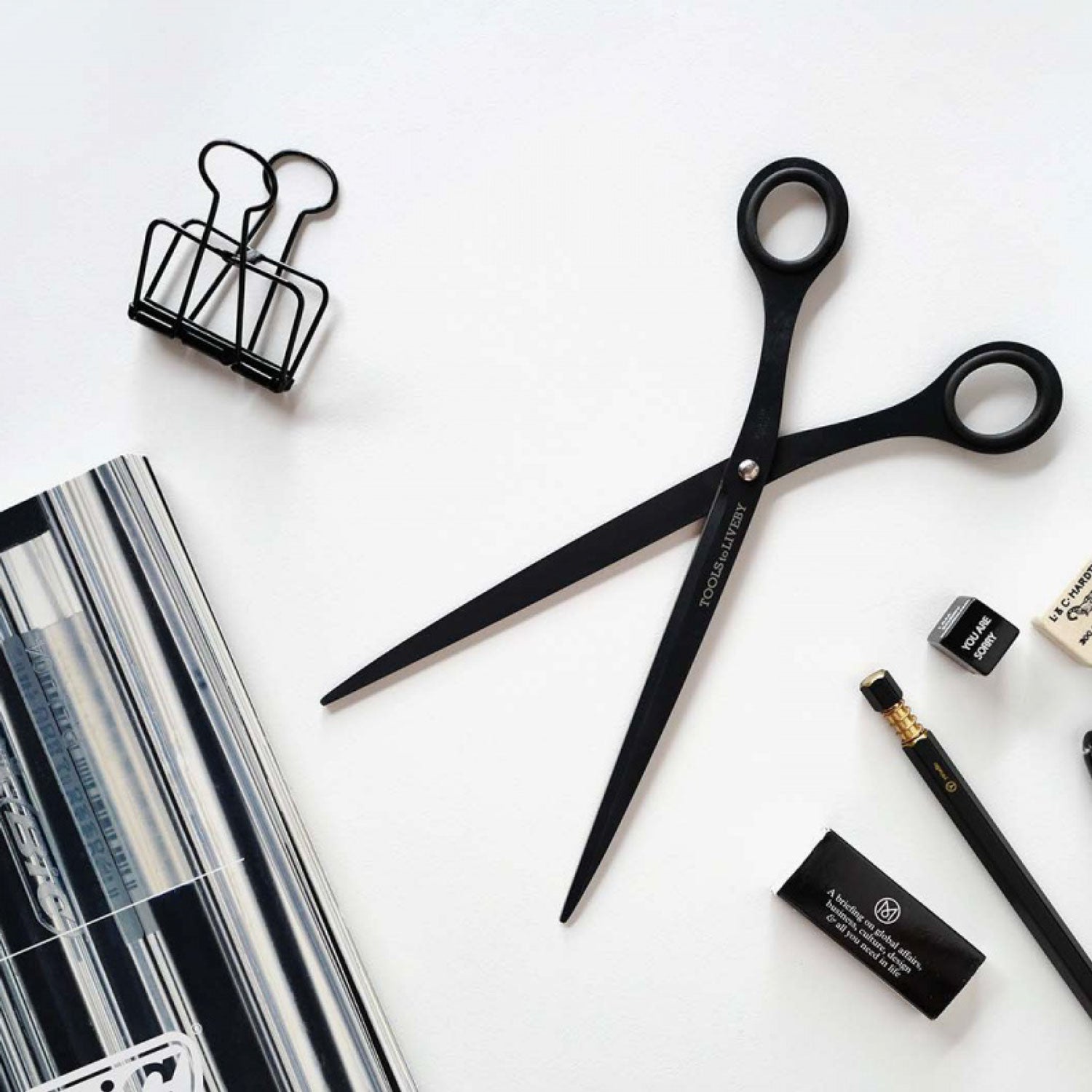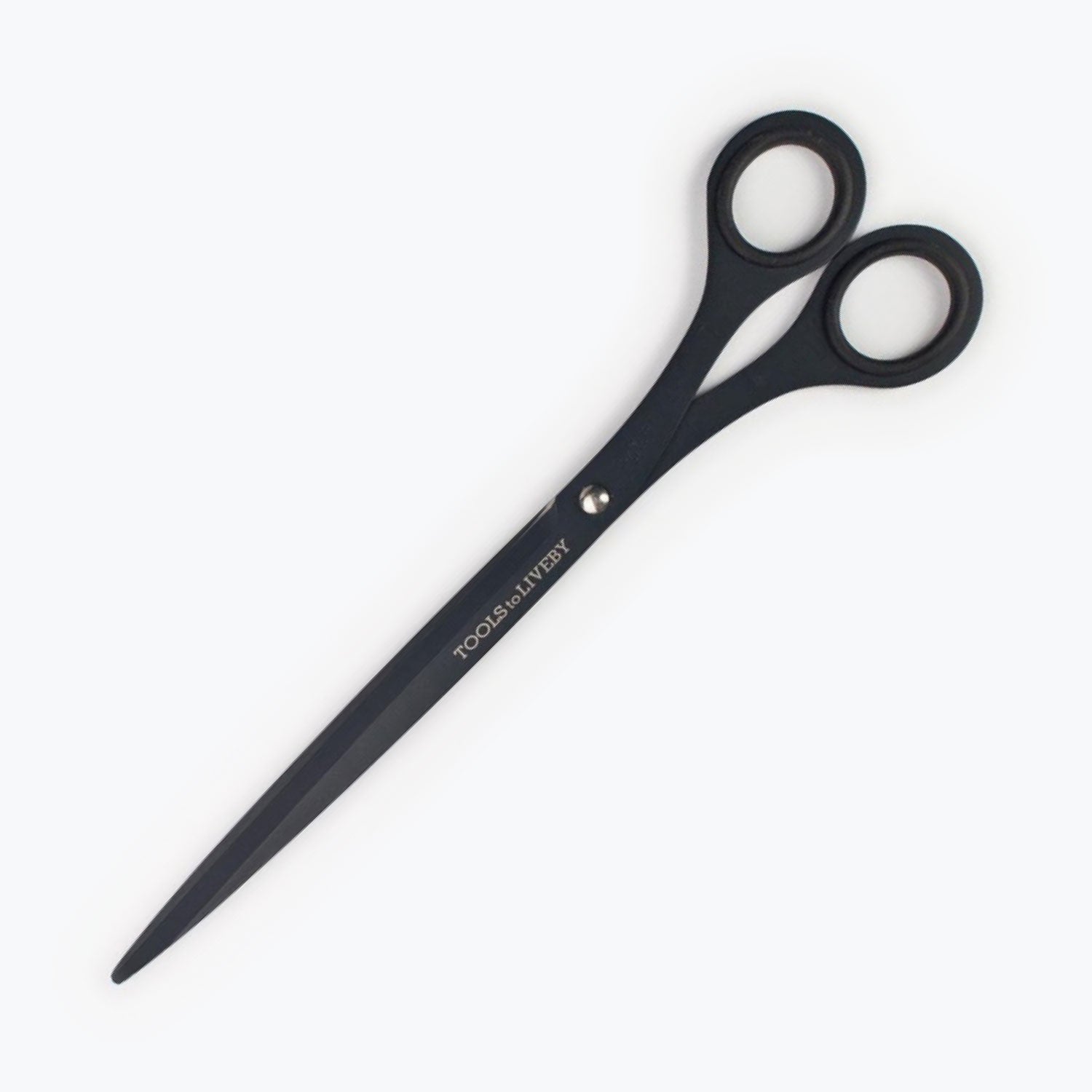 The Tools to Liveby scissors are simple and timeless in design. They are made from Japanese stainless steel with a comfortable rubber handle. Each pair is etched with a branded logo and comes in a hot foiled protective sleeve. This matt black style is coated with Teflon coating to prevent build up of glue residue.