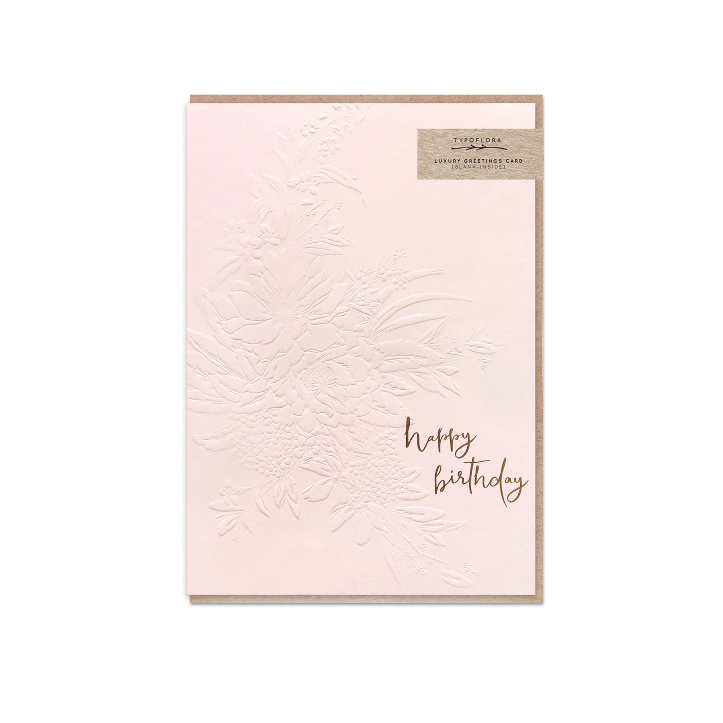 Embossed flowers and a gentle blush background make this birthday card a subtle but beautiful choice.