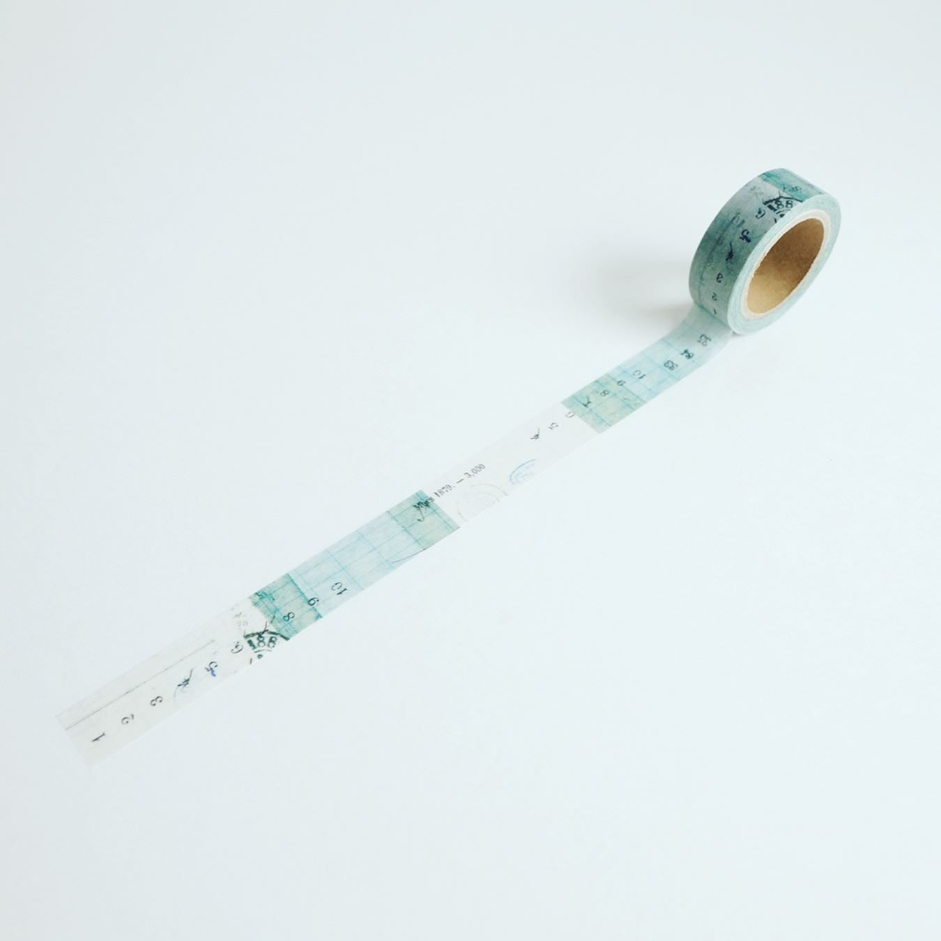 A collage of document fragments, inked stamps, and archival markings in sage and off-white—this washi tape carries the essence of something unearthed from an old ledger, full of quiet history and charm.