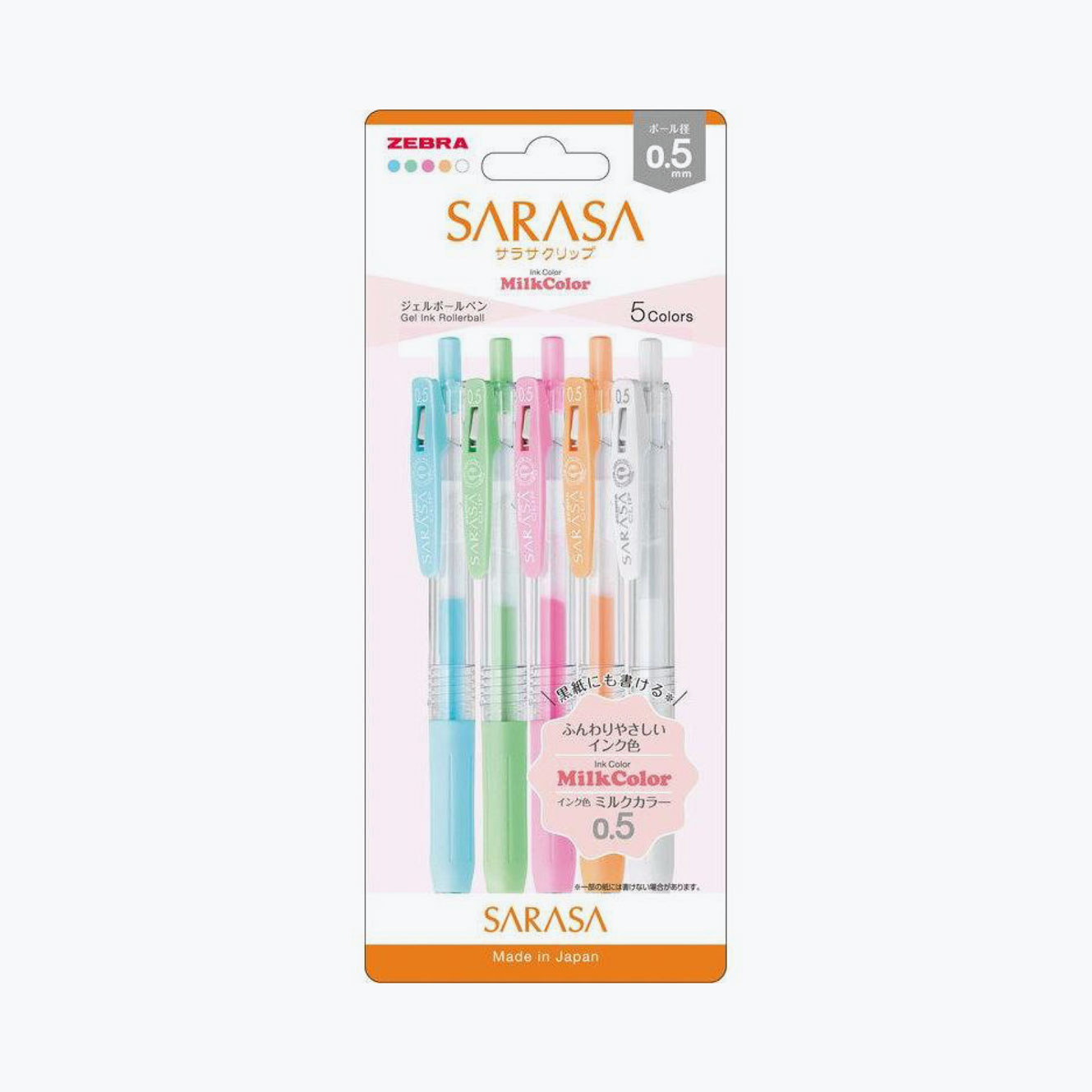 The Sarasa Clip gel pen is one of the most popular in the Zebra collection. Like other Sarasa Clip pens, the Milk Color pens contain Zebra's Sarasa ink, which is a water-based pigment gel ink. It is a smooth flowing ink for a consistent, sharp line, as well as feather, water and fade resistant.